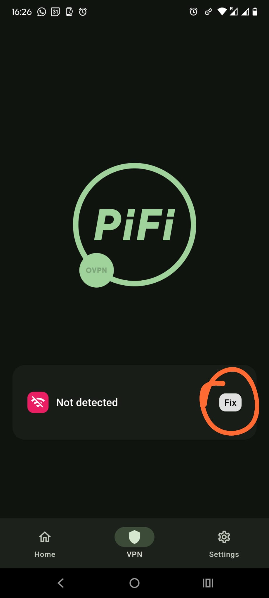 I was wondering if you could have that message ( or an abbreviated version of it , maybe a green tick icon or green radio button etc ) displayed on the PiFi app homepage ( i.e something that will display without me having to click on VPN )