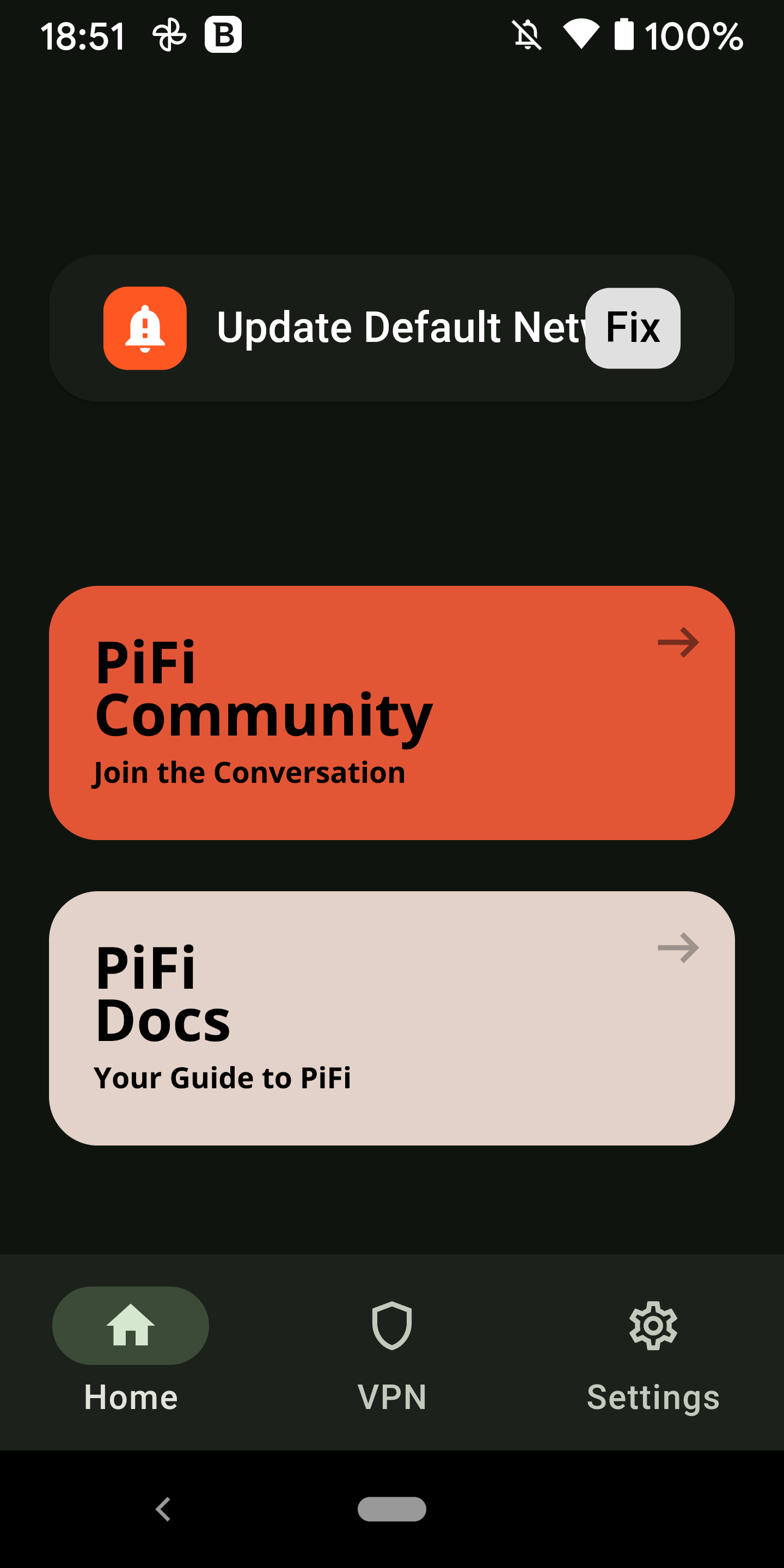 on the home page of the Android PiFi app.
